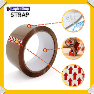 LogicaShop STRAP Rotoli Nastro Adesivo Largo per Imballaggio Pacchi, Spedizioni e Trasloco - Resistente e Silenzioso (6Pz, Marrone)